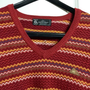 Vintage Monte Carlo Collection Magna Pure New Wool Red Zigzag Striped Size 42
