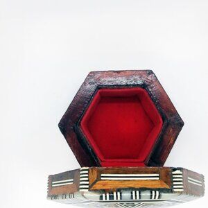 Beautiful, Handcrafted, Vintage Mosaic Inlaid-Mother Of Pearl Jewelry/Trinket Box. Lined With Red Velvet. I Believe This Is Egyptian, but There Are No Markings. App. 4" x 1.75", Inside Depth 1".