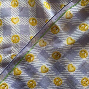 ~gingham printed style with alternating hearts and peace signs