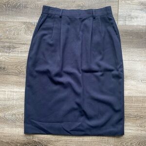 Vintage Mr Jax High-Waisted Navy Knee-Length Wool Lined Pencil Skirt Fits Size 8