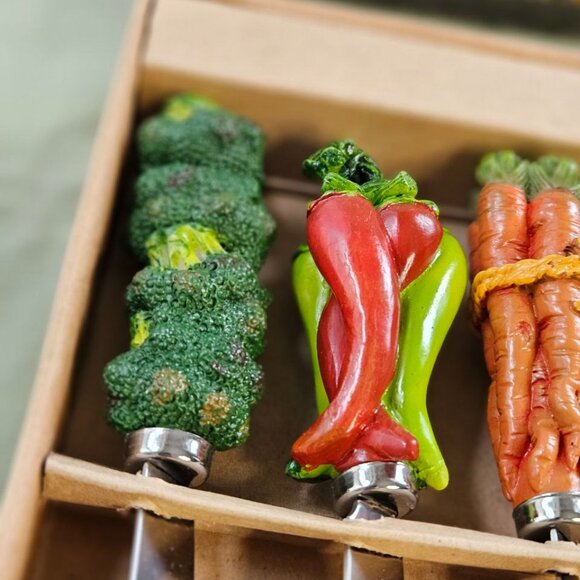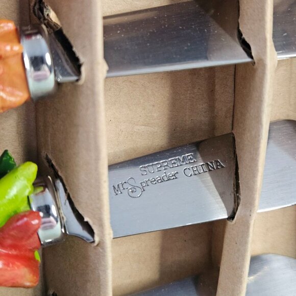 Set of Four Vegetable Decorative Cheese/Butter/Etc. Spreaders. In the original box, in great condition - quite possibly never used. Box has some visible damages, please see photo.