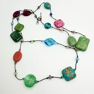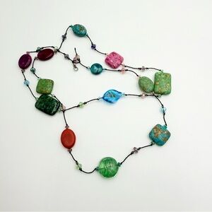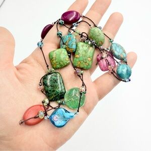 Vintage Multi Colour Venetian Glass Stone Crystal Necklace