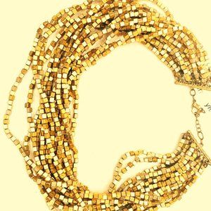 Vintage Multi Strand Metallic Cube Bead Necklace Gold Tone 46–51 cm