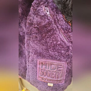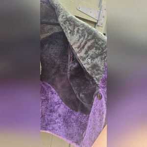 Beautiful chocolate brown, burgundy and purple Sheepskin patchwork jacket.