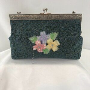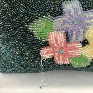 *FLAWS: Beads are coming apart and have fallen off on the back area with flowers as well as the handle. Inside the bag, the stitching around the pocket has come apart.