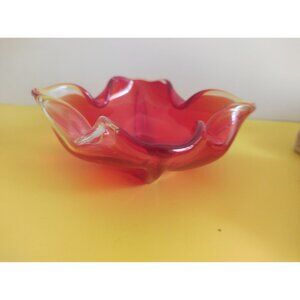 Vintage Murano Glass Ruby Red Ashtray/Candy Bowl 7" x 7"