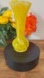 Vintage Murano Hand Blown Yellow and White Swirl Art Glass Vase with Ruffled Top