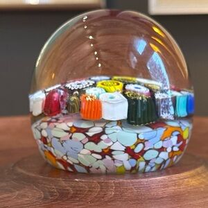 Vintage Murano Italy Millefiori Close MCM Paperweight 3”