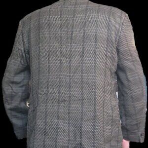 Step into classic style with this exceptional vintage Murray Goldman gray plaid blazer, a true gem from the golden era of menswear. Crafted with the precision tailoring Murray Goldman is celebrated for, this single-breasted sportcoat boasts a sophisticated glen plaid pattern in versatile shades of charcoal, light gray, and subtle white threads—perfect for elevating any outfit from boardroom to bar. The soft wool-blend fabric offers a luxurious drape and subtle texture, while the structured shoulders and notched lapels deliver that sharp, 80s-inspired silhouette that's making a retro comeback.