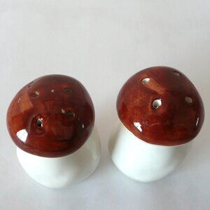 - 1 pair of ceramic mushroom shape salt and pepper shakers