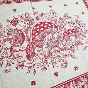 Vintage Mushrooms Printed Piece Of Linen Red And White 30.5x21.5" Retro VGC