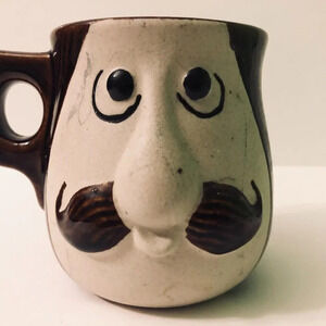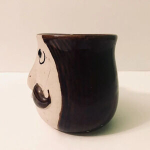 Vintage Mustache Guard Brown Mug Pottery Stoneware 3D Face Japan