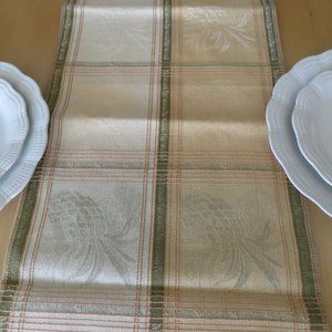 Vintage Mustard Yellow & Olive Green Table Runner With Pineapples & Hibiscus