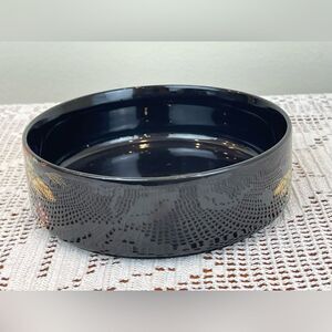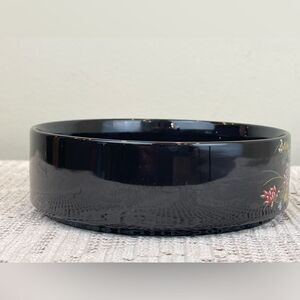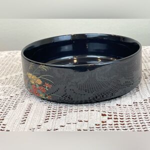Vintage NAGONA JAPAN black and floral short round vase || Vintage trinket || Vintage Asian ashtray || Vintage bowl || Dipping bowl vintage