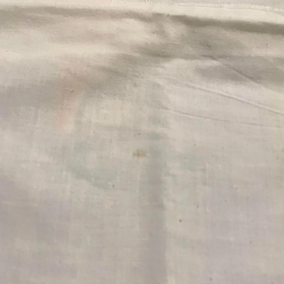 Both pillowcases are pre-owned and in used condition.They both have some bleach stains on the front and stains on the back of both as well. The tags were cut off on both. They have loose threads and wear. The opening on the pillow cases are in the back middle. Please see all photos for exact items.