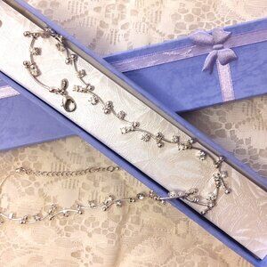 Vintage NEW MONET White Clear Crystal Silver Tone Necklace for Women Girls