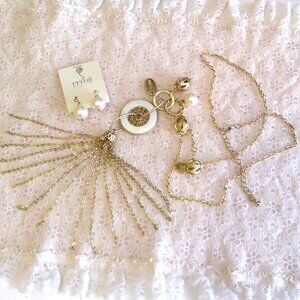 Vintage NEW mia collection Handmade Gold Beads Charms Gold Tone Necklace & Pearl Earrings Timeless VTG Art Deco Jewelry for Tops, Dresses, Sweaters