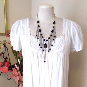Vintage NEW new touch Black Beads VTG Silver Tone Necklace Timeless Jewelry for Tops, Dresses, Sweaters