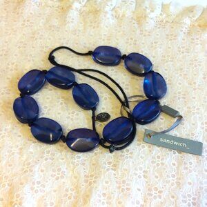Vintage NEW sandwich jewellery Large Blue Oval Beads VTG Necklace Timeless Jewelry for Tops, Dresses, Sweaters