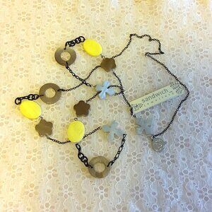 Vintage NEW sandwich jewellery Yellow Brown Beads Pendant VTG Art Deco Necklace