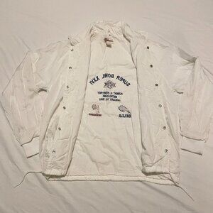 This jacket is pre-owned and in used condition. It is wrinkled from storage. There is some loose threads and wear on it. Please see all photos for exact item.