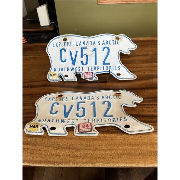 Vintage NORTHWEST TERRITORIES POLAR BEAR LICENSE PLATE Set # CV 512