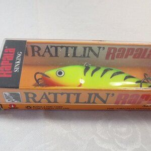 Vintage NOS Rattlin' Rapala Firetiger Crankbait Sinking Model Fish Lure