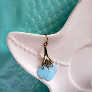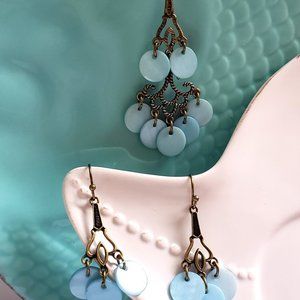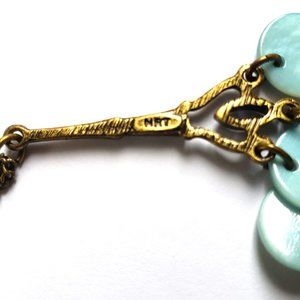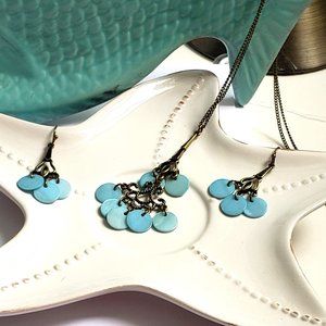 Vintage "NRT" Stamped Necklace & earring set Blue Mother of Pearl shell