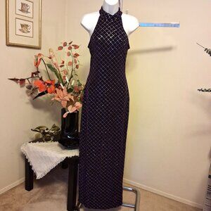 Vintage NWT ALGO Women’s Purple Silver Maxi Dress Elegant Sleeveless Mock Neck Cocktail Party Dresses Size 8 could fit for 6 or 8
