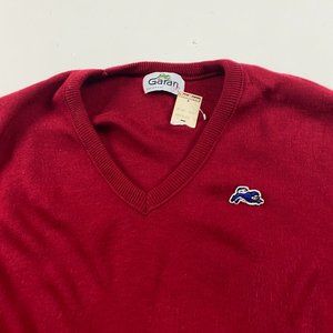 Vintage NWT Garan V Neck Sweater Jumper Pullover Men's Large Burgundy Red Tiger