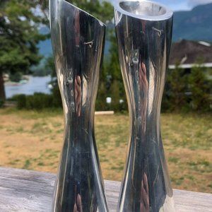 Two vintage silver Nambe Studio candlesticks, used once. Very limited edition, 1994. About 1 lb each.