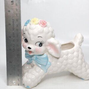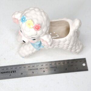 Vintage Napco Curly Lamb Ceramic Planter Pot #598 Kitchy 60s Home Decor Pastel