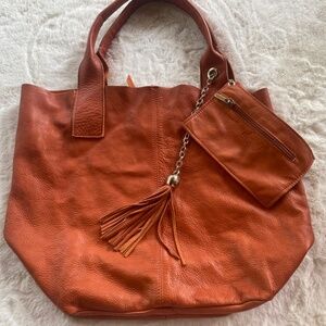 Nardelli vintage butter soft Leather hobo tote with small leather wallet attached by leather strap