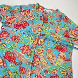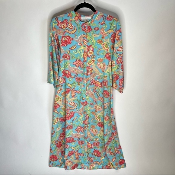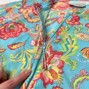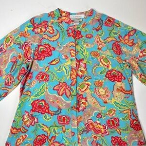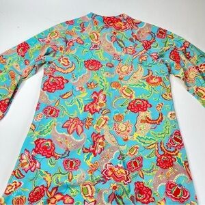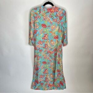 Vintage Natori Blue Paisley Floral Zippered Long Sleeve House Sleep Lounge Dress