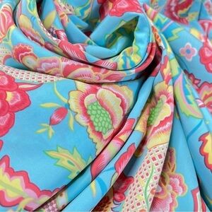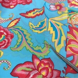 - Blue, red, pink, green paisley floral pattern