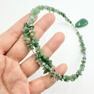Vintage Natural Jadeite Chips Crystal With Large Jadeite Pendant Wire Necklace