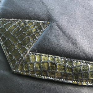 1960s / 1970s Vintage Naturalizer Purse Clutch in Black with "Alligator" Simulated Accents