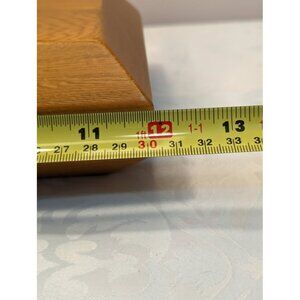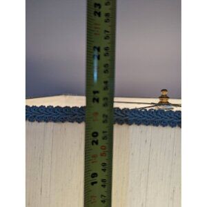Approx. 21" tall x 12" wide. Lampshade features blue trimming.