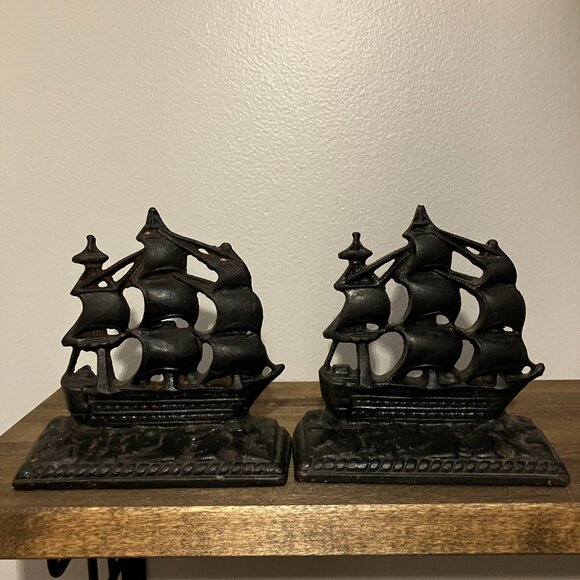 Vintage Nautical OLD IRONSIDES Cast Iron Ship Pair of Heavy Bookends
