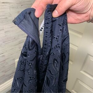 Vintage Navy Blue A Line Midi Skirt Eyelets Floral Embroider Sz 18 waist 38"