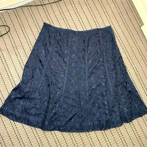 In excellent condition. Great well made lightweight feminin timeless skirt. Breathable cotton material. A line skirt with a side zipper closure. Beautiful floral embroidery with eyelets details. Fully lined. Please see pictures