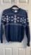 Vintage Navy Blue And White Snow Flake Crew Neck Ski Sweater Size S/M