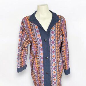 Vintage Navy Blue Aztec Tribal Boho Cardigan – 100% Cotton Jacket