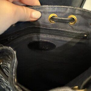 Vintage Navy Blue Croc Leather Crossbody Bucket Bag