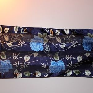 Vintage Navy Blue Floral Rose Print Rectangular Long Satin Scarf