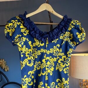Vintage Navy Blue and Yellow Traditional Hawaiian Dress
