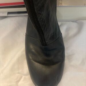 Size 7 but shaft is narrow. Killer on. Instant Studio 54 vibe or would look great with a DVF wrap.