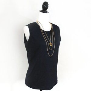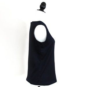 Vintage Navy Sleeveless Micropleat Top, Navy Blue Popcorn Top