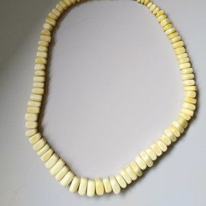 Vintage necklace 1960s, Natural stone jewellery, short necklace, 18 inches, simple but elegant, brass clasp, ivory colour necklase,single string of beads