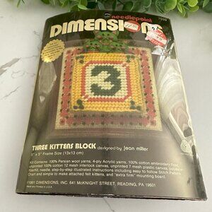 Vintage Needlepoint Dimensions Three Kittens Block NIP Vintage 5x5"